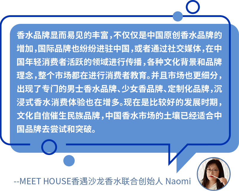 “香水作為近兩年比較熱的賽道,得到了廣泛的關(guān)注,意味著這個品類在中國本土所能獲得的資源也會越來越多,意味著我們現(xiàn)在遇到的問題,有更多元的力量來共同解決,我個人認(rèn)為國貨香水品類還是在啟動期,對于品牌來說情況各不相同,有自己需要突破的內(nèi)容,但對于整體來說,短期內(nèi)還談不到行業(yè)瓶頸問題。”Naomi說道。