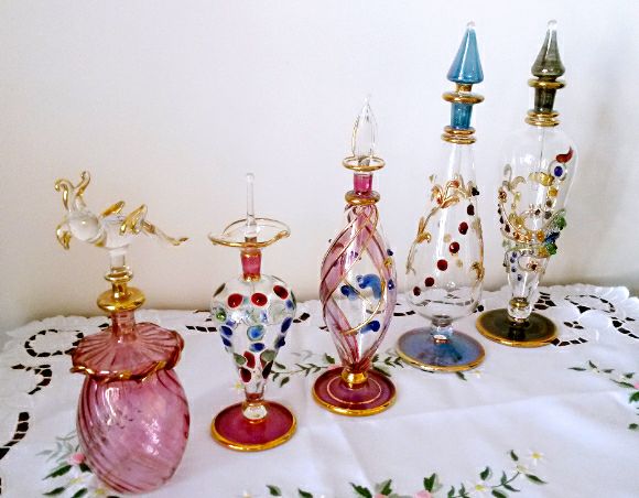不過為了那些晶瑩剔透的香水瓶我也愿意買買買!裝香精的瓶子,或高或矮,有的呈棗核型,有的呈球狀,有的是五彩琉璃瓶,有的則是單色造型瓶……每個瓶子上的圖案都不太一樣,凹凸有致,層次分明,畫工精細,讓人愛不釋手。