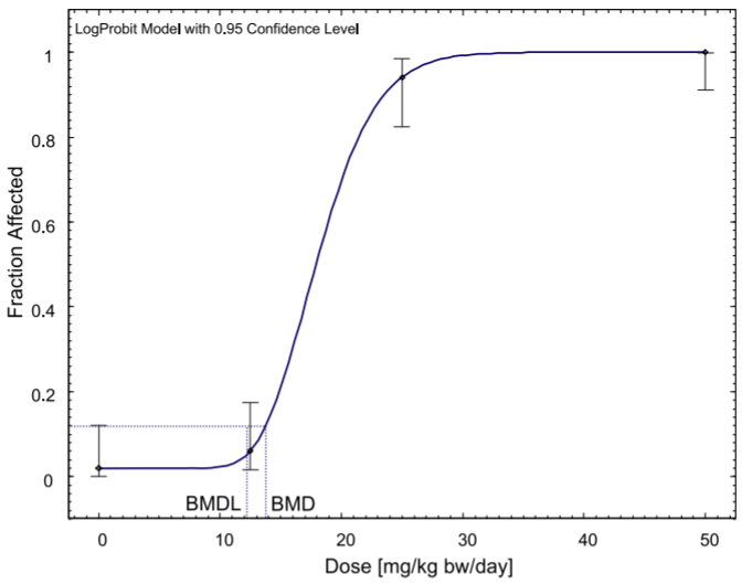 在一項對雌性B6C3F1大鼠的長期慢性研究中,建立BMD模型治療痙攣發(fā)作。原始數(shù)據(jù)來自NTP(2009)。