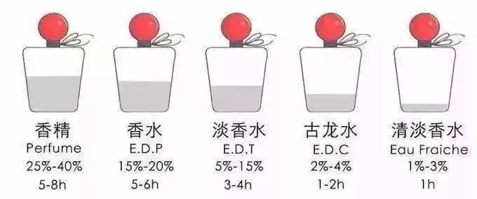 PS:濃度在香水行業(yè)中沒有硬性標(biāo)準(zhǔn),所以大多數(shù)品牌會(huì)按照自己的標(biāo)準(zhǔn)來劃分。列如A品牌的EDP濃度比B品牌的EDT還要低的情況,所以買香水一定要仔細(xì)對比之后再購買。