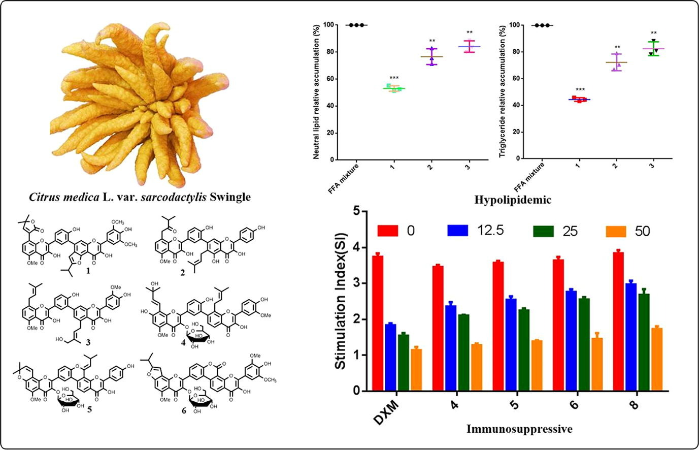 佛手柑果皮雙黃酮類化合物的結(jié)構(gòu)多樣性及其降血脂和免疫抑制活性