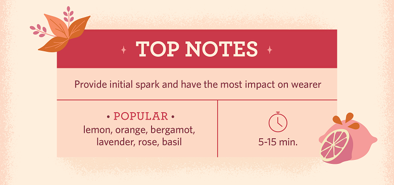 前調(diào)通常蒸發(fā)得很快,只會(huì)在頭5到15分鐘停留。它們的主要目的是散發(fā)出最初的香味,然后平穩(wěn)過(guò)渡到下一部分的香味。因此,前調(diào)通常由更輕更小的分子組成。