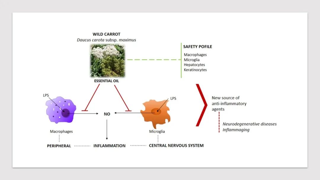 胡蘿卜Maximus精油亞種的生物活性和安全濃度已被披露,支持進一步的體內(nèi)研究,以開發(fā)治療有效的補充,以管理皮膚病和/或炎癥相關(guān)疾病。此外,考慮到炎癥在神經(jīng)退行性疾病的發(fā)展中起著關(guān)鍵作用,這些結(jié)果的新穎性和意義為開發(fā)一種預(yù)防或改善這些高度流行的慢性疾病的營養(yǎng)品奠定了一個有趣的起點。