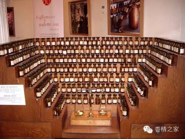 小枕備注:接下來(lái)我們看到的幾幅圖里,大家都可以看到在調(diào)香師的桌前擺了一大堆一大堆一大堆的精油,這個(gè)巨大的精油架窩們一般稱它為Perfume Organ,Organ這個(gè)詞意思很多,在這里估計(jì)就是形容這個(gè)架子像管風(fēng)琴一樣層層疊疊吧~