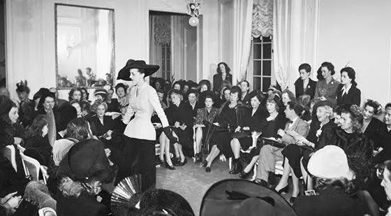 40 年代第二次世界大戰(zhàn)之后,時尚再次從干練現(xiàn)代轉(zhuǎn)為嫵媚優(yōu)雅,法國時裝大師克里斯汀·迪奧(Christian Dior)推出的"新風(fēng)貌"(New Look)時裝系列為女性形象掀起革命。